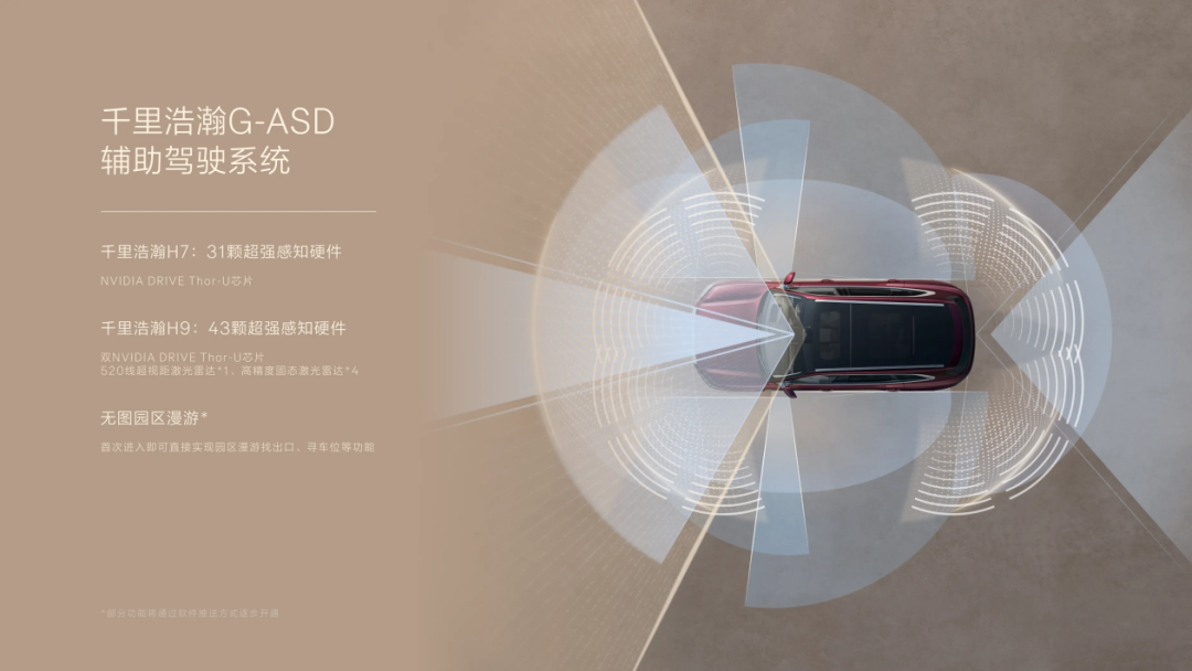 极氪8X的智能化,不是堆料,是真能用、真好用。这一方面,极氪8X直接拉到了行业天花板。5颗激光雷达加上43个感知硬件,构成了它的“感官系统”;双Thor-U芯片提供的1400TOPS算力,则是它的“超级大脑”。更重要的是,它搭载了千里浩瀚G-ASD全场景真无图智驾,这意味着无论你在城市还是乡村,有路的地方它就能自己开。