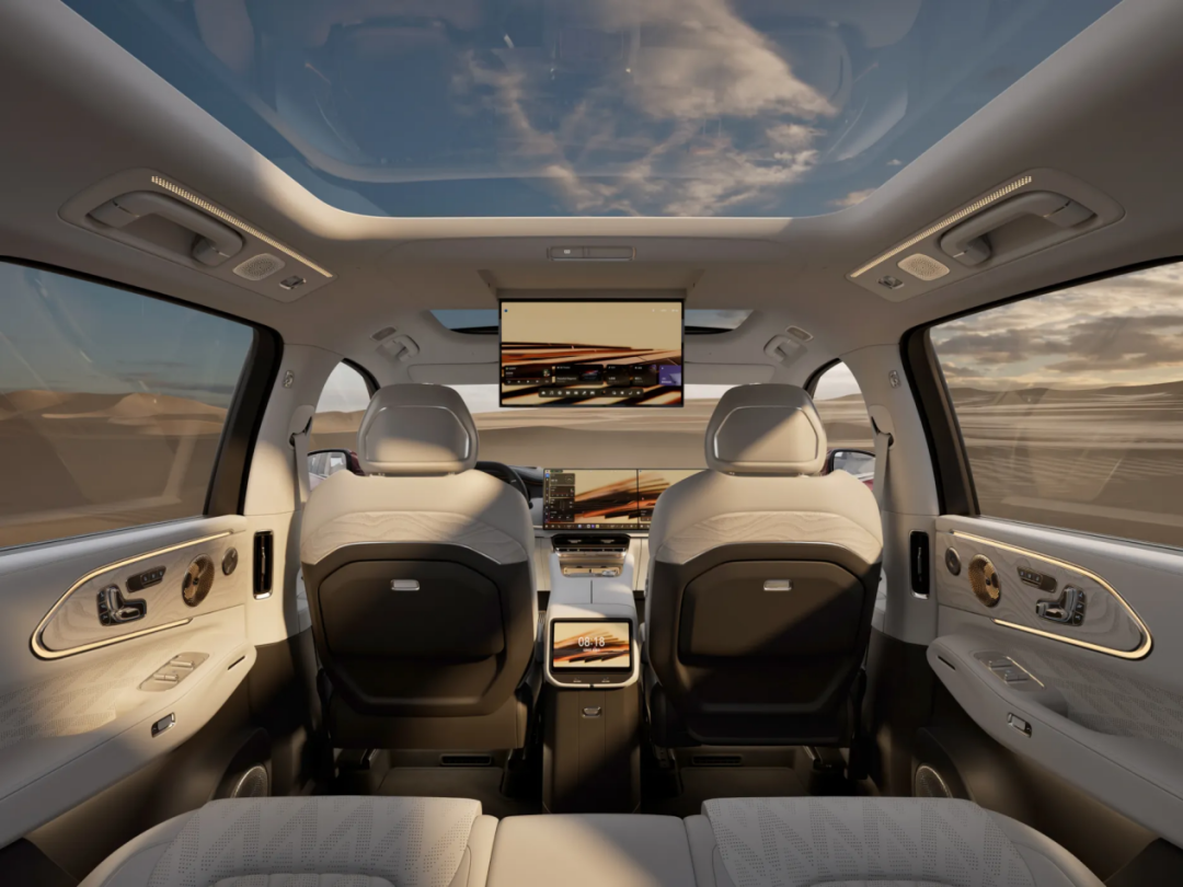 坐进二排那一刻,267mm的膝部空间能够让1.85米的大个子轻松翘起二郎腿。那张同级唯一的伊姆斯躺椅——150mm滑轨、137度仰角、673mm腿托,躺下去的那一刻,整个人都被柔软的真皮包裹住了。前后排22点按摩同时开启,29扬声器的Naim音响开始播放音乐,3868W的功率让每一个音符都直击心脏,头顶17英寸3K OLED屏播放着日落山海,5D影院功能让氛围灯、香氛、空调随着剧情联动——那一刻,我突然理解了什么叫“移动的豪华客厅”。