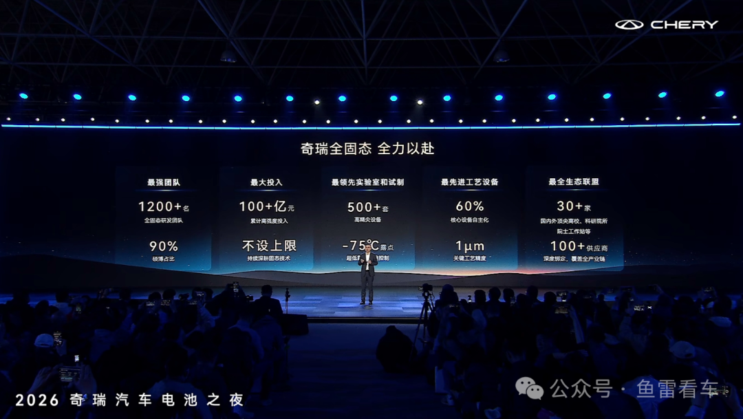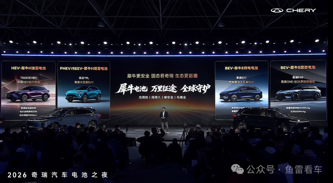 这次电池之夜,奇瑞直接把底牌亮了出来。现场展示的犀牛电池,核心就锚定了用户最在意的液态安全性能,同时也公布了固态电池的前瞻布局,没有停留在概念炒作,而是给出了清晰的落地规划。更难得的是,奇瑞没有关起门来自说自话,直接携手火灾安全全国重点实验室、中汽中心丨新能源、国家市场监督管理总局重点实验室(储能与动力电池安全)三家国家级权威机构,联合发布了《全球动力电池安全白皮书2026》,把动力电池的安全标准,拉到了行业公认的权威新维度。