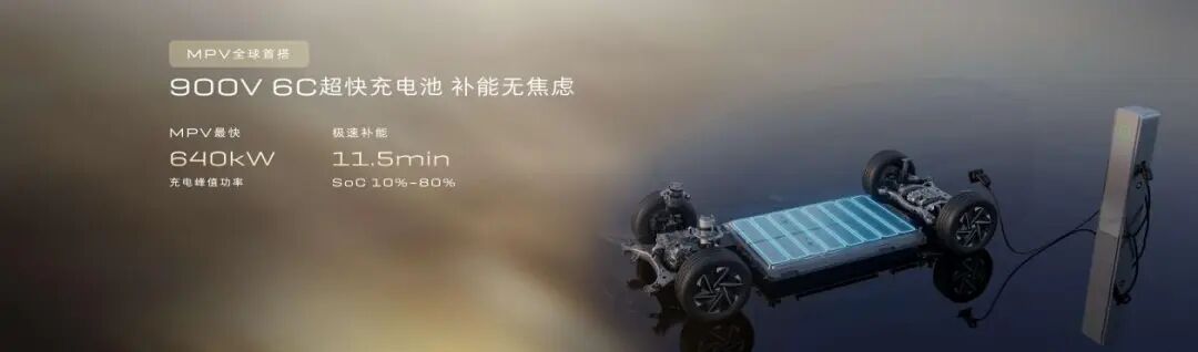 第一,充电。纯电版是全球首搭900V 6C超快充电池的MPV,11.5分钟能从10%充到80%。这个速度,本就处在行业第一梯队,但3月5日比亚迪发布的闪充技术,把行业快充标准拉到了新的高度。