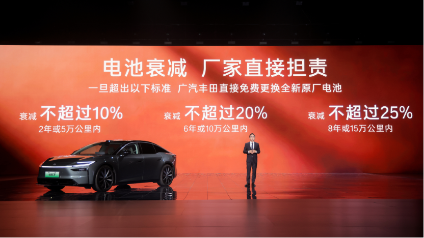 铂智7的承诺是:主动提高标准、细化承诺,要求2年或5万公里内,电池衰减不超过10%;6年或10万公里内,衰减不超过20%;8年或15万公里内衰减不超过25%,一旦超出,免费换新。