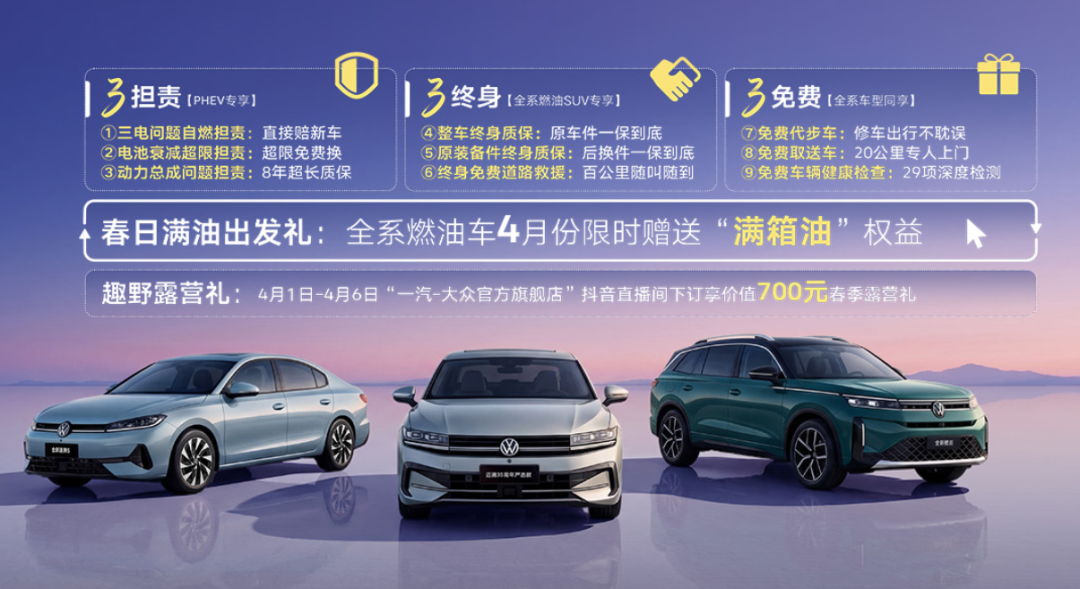 3月31日,厦门,一汽-大众办了一场春季新品发布会。五款车齐发,覆盖燃油与插混、轿车与SUV主流细分市场,同时抛出“三担责、三终身、三免费”九大服务承诺。说实话,在如今这个市场环境里,能一次性拿出这种阵仗的传统车企,不多了。如果只把它当一场常规的新车发布会看,那就真把这篇“文章”看浅了。
