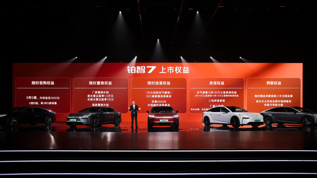 这套定价逻辑的关键在于:它不是靠一款“乞丐版”拉低门槛、靠几款“顶配”收割利润,而是让每个预算层级的用户都能拿到对应的高价值配置。这恰恰是此前20万级纯电轿车市场的痛点——消费者不得不在长续航、高阶智驾和豪华配置之间做“三选二”甚至“三选一”。铂智7用配置组合拳彻底打破了这种“三角困局”。