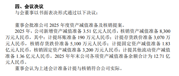有行业人士表示,此次资产减值计提,充分体现公司在财务管理上的主动性与规范性。