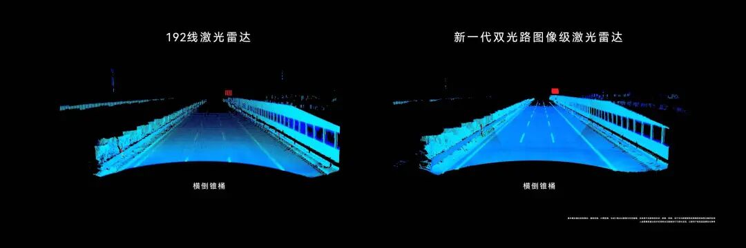 在性能上,896线的激光雷达大幅度提升了难点障碍物的识别能力。比如可在 夜晚120 米外超远距识别 14cm 的小物体。目前市面上主流的192线30CM的物种在50米都很难识别。为什么定14CM,因为车的底盘绝大多数都是高于14CM,只有少部分的跑车和微型车是低于这个。在这个场景下,车辆可以进行舒适的避让。