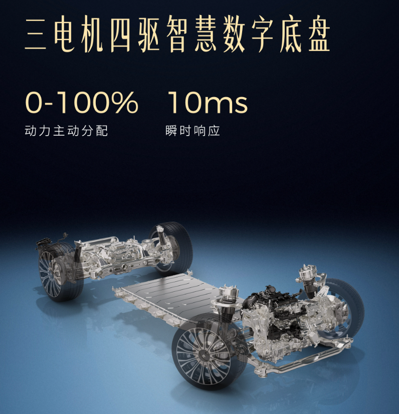 这套被命名为“智慧数字底盘”的系统,拥有10毫秒级的扭矩分配能力,甚至能通过后电机产生反向扭矩来实现“负扭矩输出”,在冰雪路面上锁死后轮提高循迹性。发布会前挑战国家跳台滑雪中心“雪如意”85米垂直落差,就是这个技术的秀肌肉。