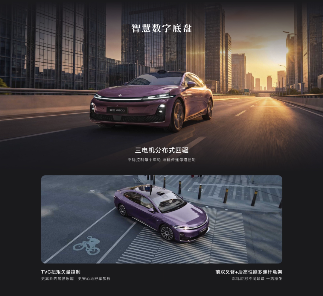 昊铂A800最狠的一刀,切在了动力系统上。全系标配三电机四驱?不,看配置表要仔细。