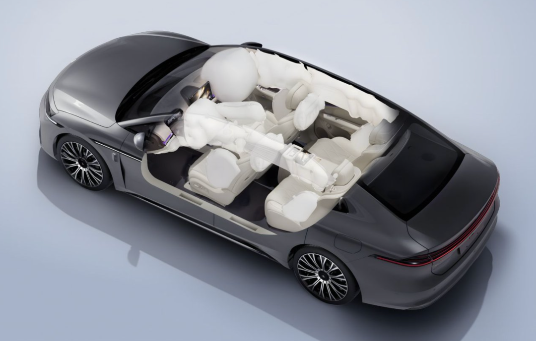 翻阅配置表,有几个细节值得注意:14个安全气囊(含二排正面气囊)、八大系统冗余设计(定位、感知、计算、电源、制动、转向、驻车、通讯)、弹匣电池2.0的枪击试验标准。