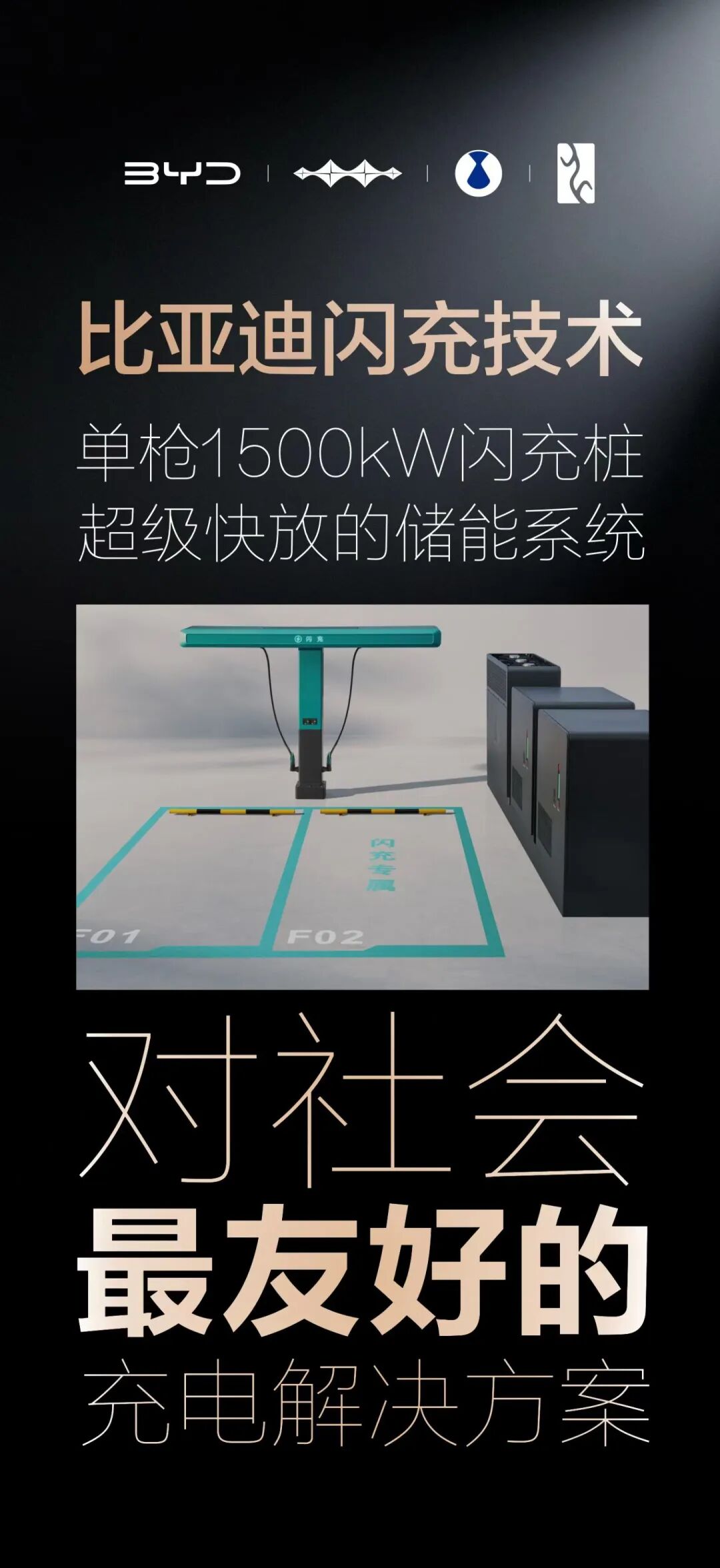 而比亚迪的解决方案,堪称“神来之笔”。1500kW的全球最大功率闪充桩,搭配“储充一体”系统,就像给充电桩装了“能量蓄水池”和“功率放大器”。哪怕是100kW的普通充电桩,不用加铜丝、不用改电网,也能瞬间放大10倍功率,变成闪充桩。这意味着,用同样的基建投入,能支撑10倍的充电需求,每一份铜资源都用在了刀刃上。