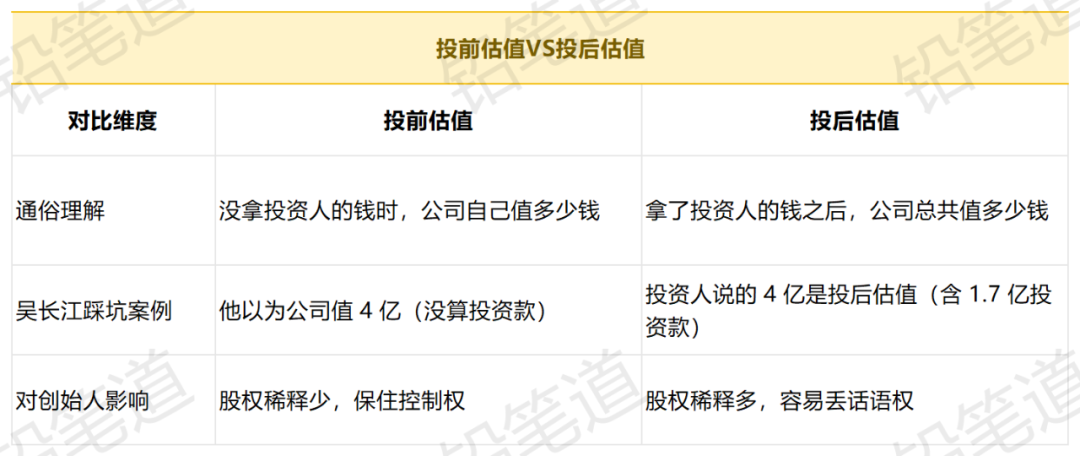 他本来是第一大股东,最后被投资人(赛富亚洲阎焱)“玩”了个概念,即把“估值”默认为“投后估值”。而吴长江把它理解成了“投前估值”。