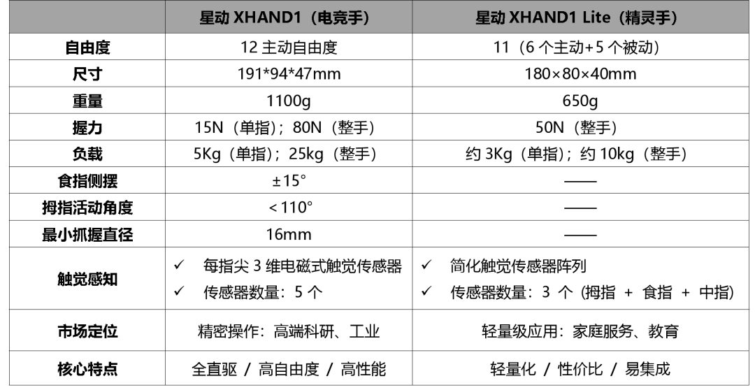 这两款产品形成星动纪元灵巧手产品线的 "高低搭配":XHAND 1以12个主动自由度和全直驱方案成为 "性能天花板",适合工业精密操作和专业科研;XHAND 1 Lite则以轻量化设计和适中性能主打家庭服务和教育市场。