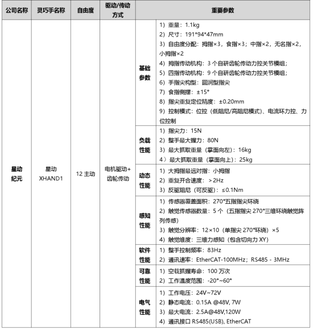 星动XHAND1 详细参数介绍(机器觉醒时代制图)