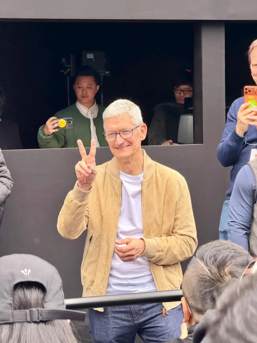 苹果公司CEO蒂姆·库克站在苹果旗舰店前,向欢呼的人群比出“耶”的手势,并用一句“谢谢”回应这座城市的热情。
