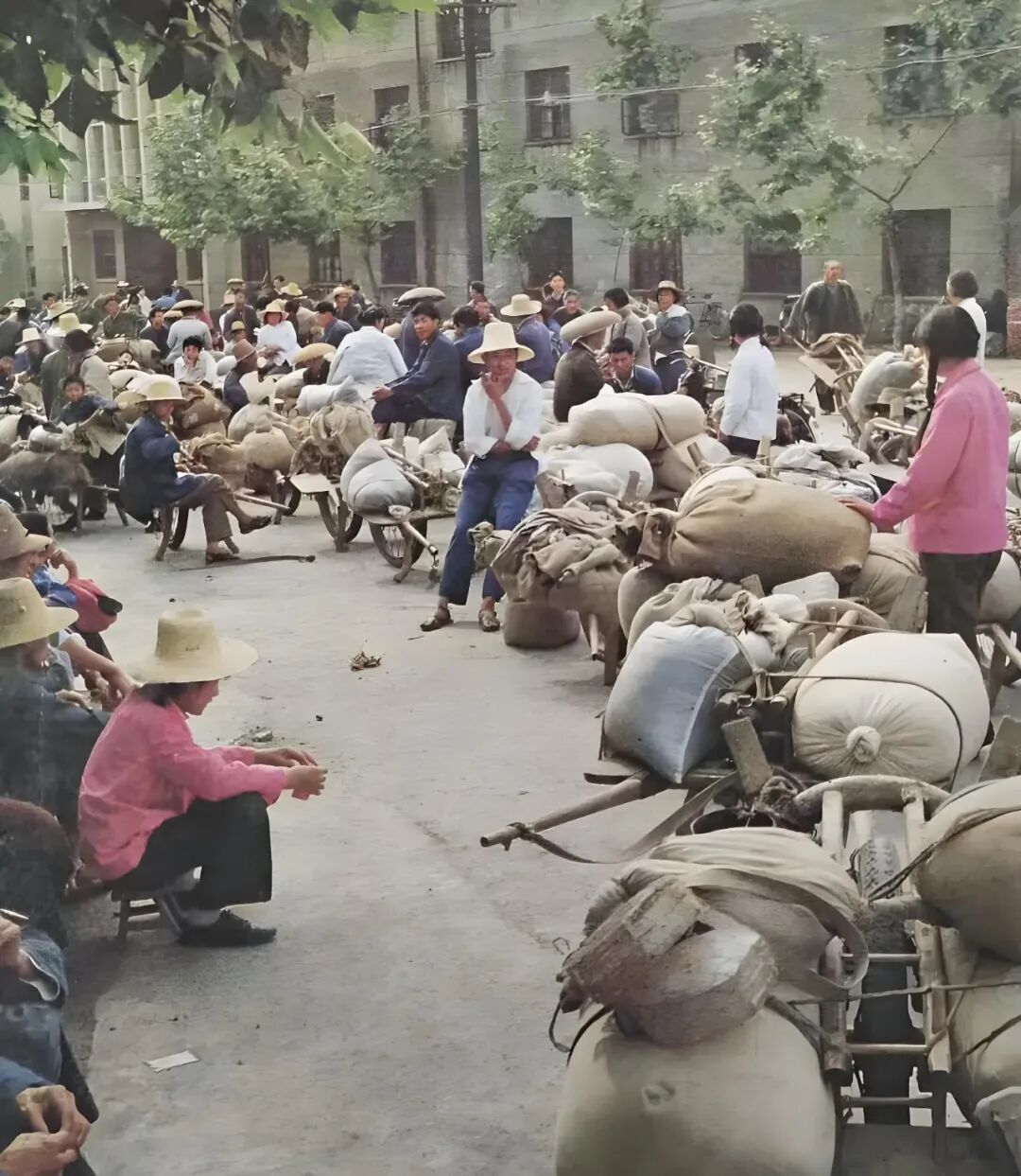 七八十年代农民交公粮场景
