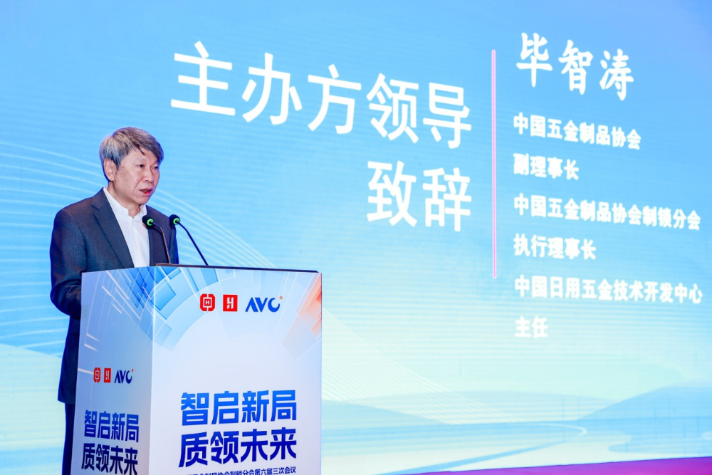 中国日用五金技术开发中心主任、全国五金标准化技术委员会副主任委员毕智涛代表主办方致辞。他表示,中国日用五金技术开发中心始终秉承"立足行业、服务行业"的核心理念,依托标准制定、质量检测、信息服务、科研创新四大核心职能,助力行业提升技术水平与国际竞争力。