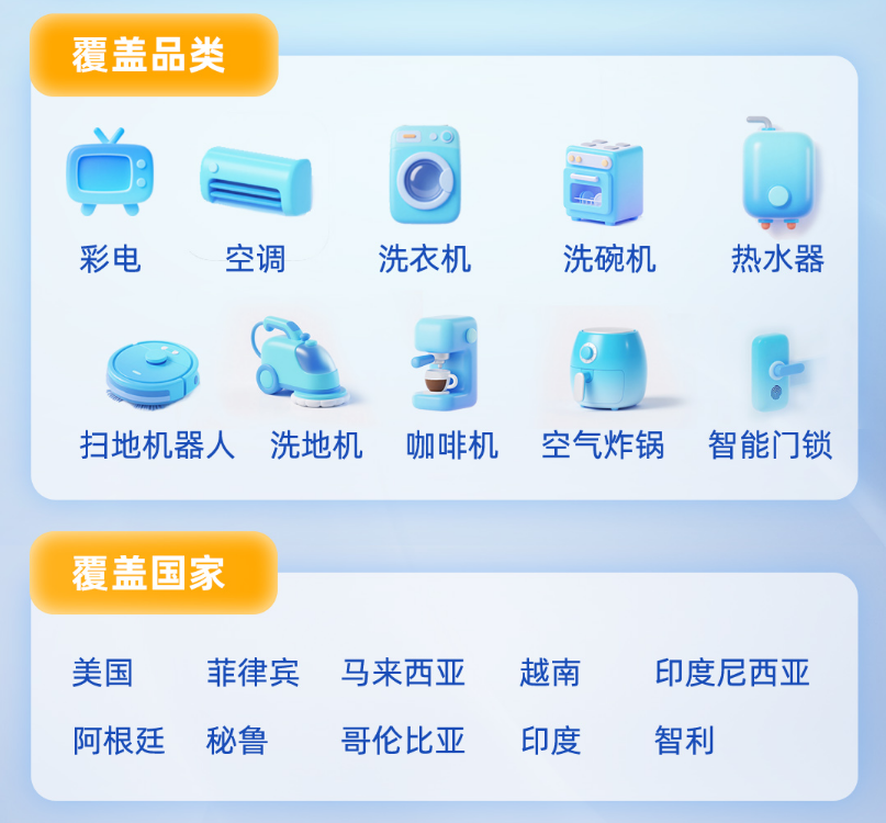覆盖10大出口热门国:数据全面覆盖美国、菲律宾、马来西亚、越南、印度尼西亚、阿根廷、秘鲁、哥伦比亚、印度、智利等家电出口核心市场,以强大的数据覆盖能力,助力企业拓宽市场分析的广度与深度。