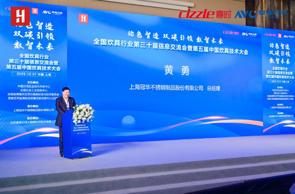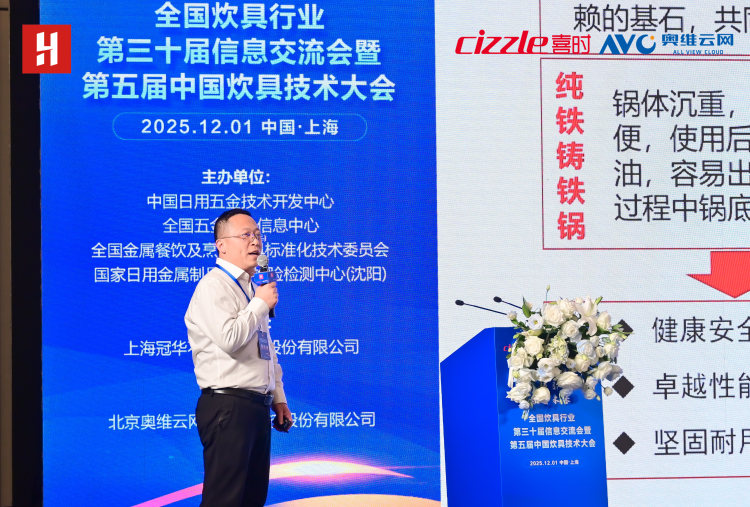 2025年12月1日,全国炊具行业第三十届信息交流会暨第五届中国炊具技术大会在上海崇明由由喜来登酒店成功举办。本次会议由中国日用五金技术开发中心、全国五金工业中心、全国金属餐饮及烹饪器具标准化技术委员会、国家日用金属制品质量检验检测中心(沈阳)主办,北京奥维云网协办,上海冠华承办,以“绿色智造·双碳引领·数智未来”为主题,汇聚行业领导、企业代表及专家学者,共探炊具产业转型升级新路径。