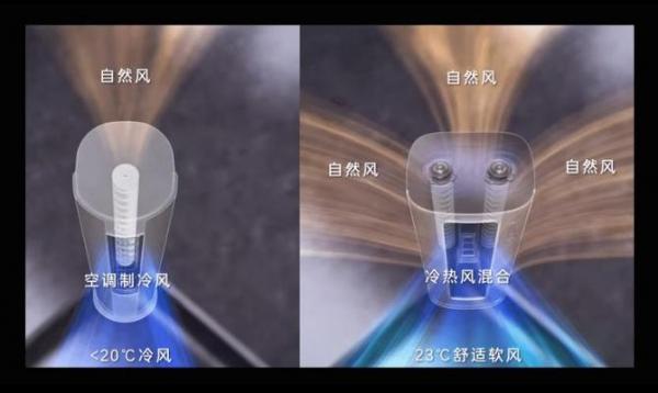 2016年,卡萨帝推出射流匀风专利技术,改变传统直吹路径,让冷风与空气混合后再送出,实现从硬风到软风的转变。