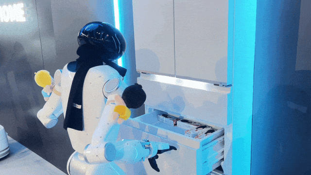 海尔家庭机器人可以将食材分门别类放进冰箱;石头科技的双轮腿扫地机G-Rover,能爬楼梯、跨复杂地形;方太的烹饪机器人厨房,通过机械臂加人形机器人配合,从洗菜、切菜到烹饪装盘,全程自动。
