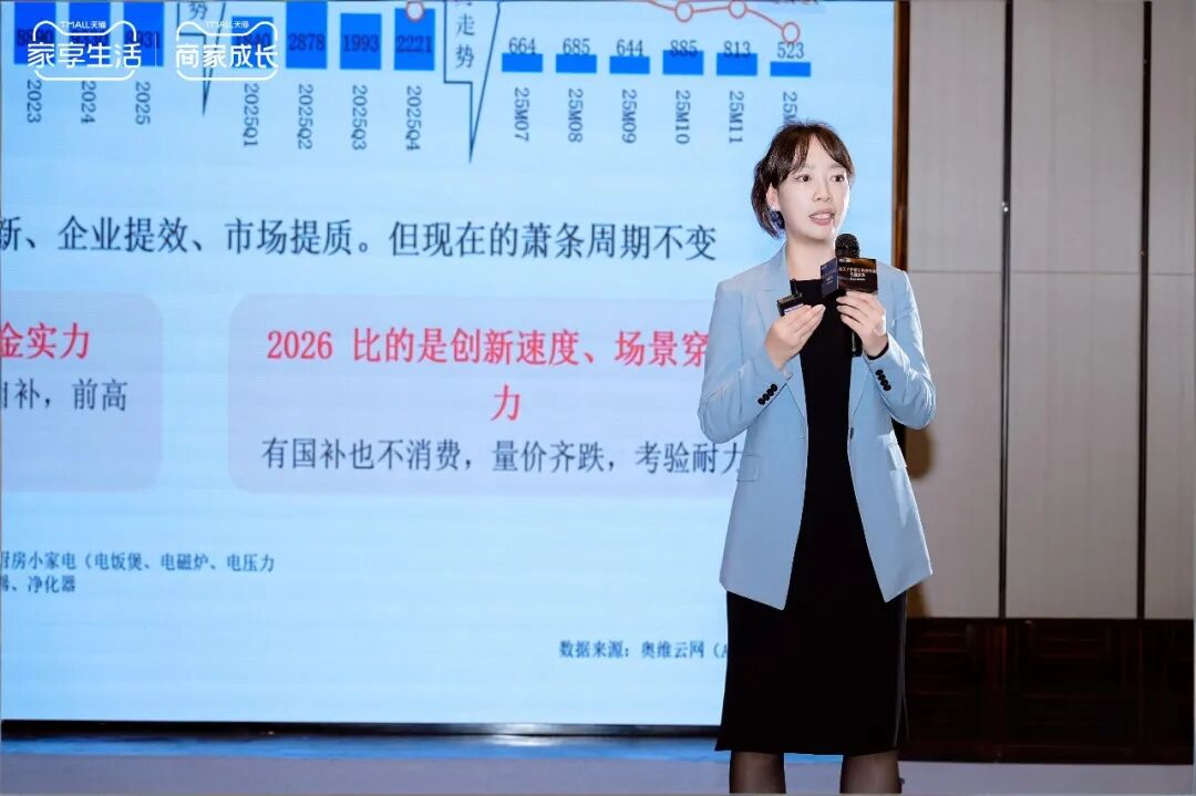 3月26日下午,2026 广东家电产业智能创新峰会暨广东省家用电器行业协会年会在佛山潭洲国际会展中心隆重举行。奥维云网(AVC)小电事业部总经理李婷针对 2025 年中国家电产业市场表现进行总结,同时对 2026 年行业趋势作出研判。