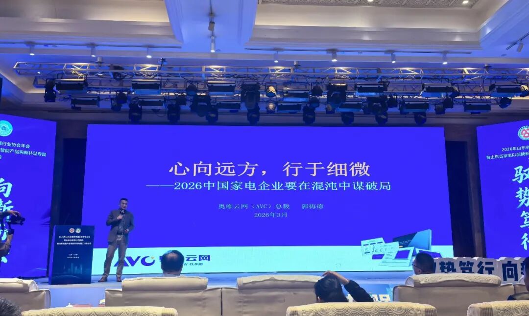 3月26日,山东省家用电器行业协会2026年年会系列活动在济南隆重举行。奥维云网(AVC)总裁郭梅德受邀参与并对家电企业发展现状及未来趋势进行分享。