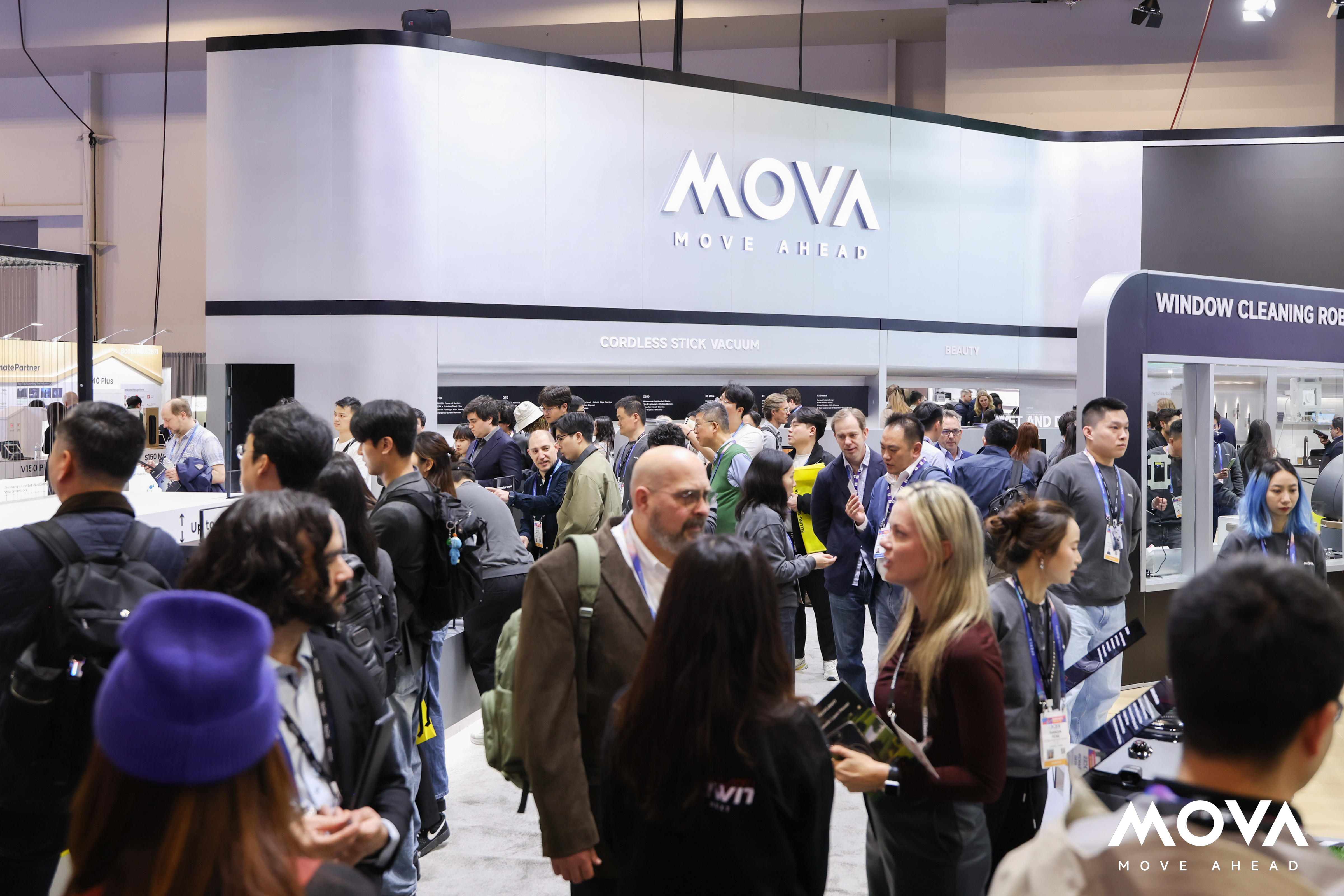 1月份的CES上,MOVA通过“Move Up, Move Beyond”主题展,带来能飞上天、会爬楼的扫地机器人;紧接着在1月15日的美国硅谷,MOVA举办了2026年首场发布会,推出了5大品类、20余款产品,覆盖扫地机、吸尘器、擦窗机、洗地机等。