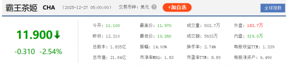 霸王茶姬咖啡因上热搜,美股一度崩 14%,回应称产品咖啡因均来自天然茶叶非人工添加