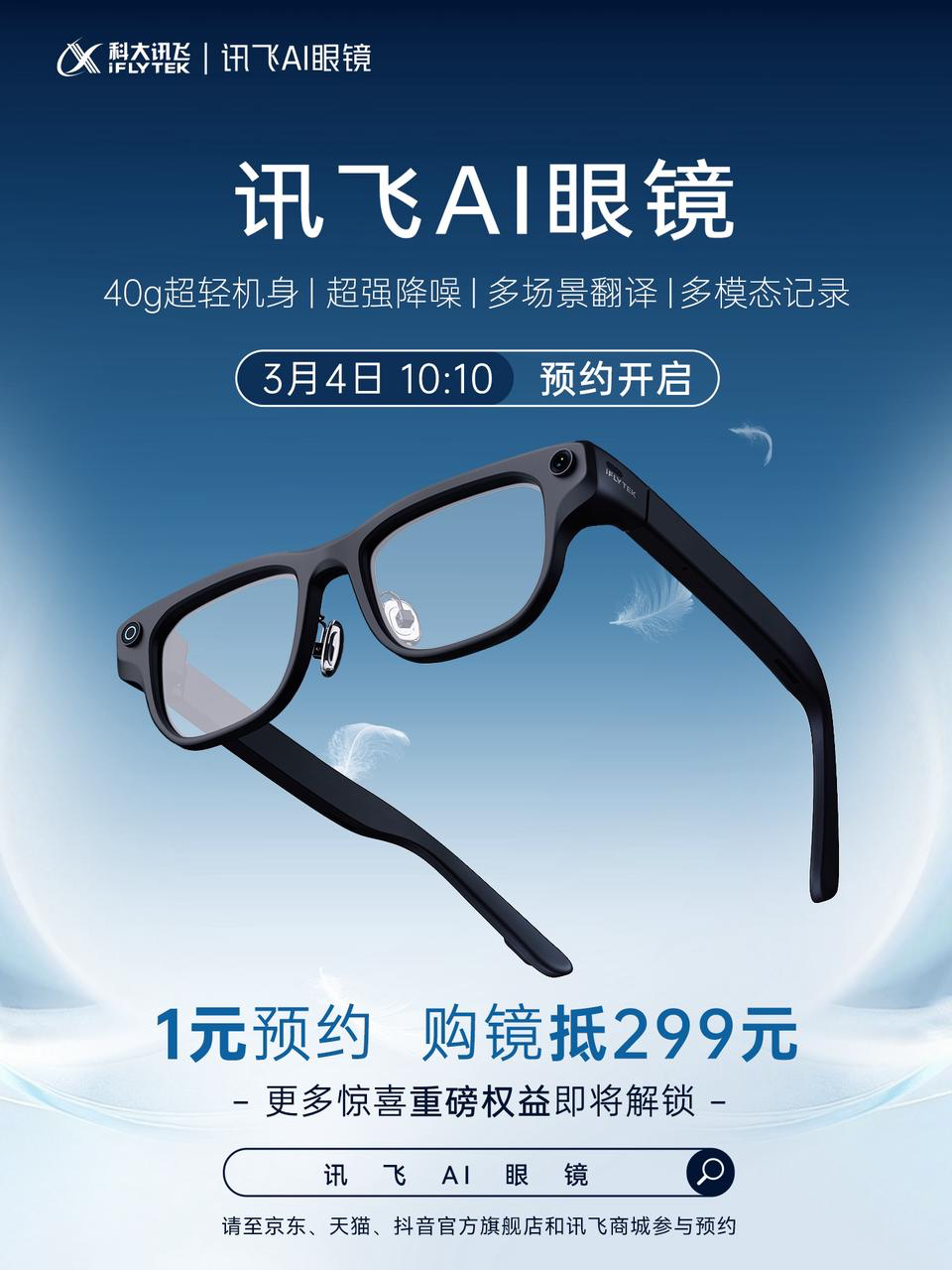 近日,科大讯飞AI眼镜首次在MWC上亮相,并于3月4日在各大平台开启了一元预订与预售,此前我们就有相应的报道(讯飞AI眼镜支持“唇动识别”;今年国内AI眼镜销量有望破200万副)。