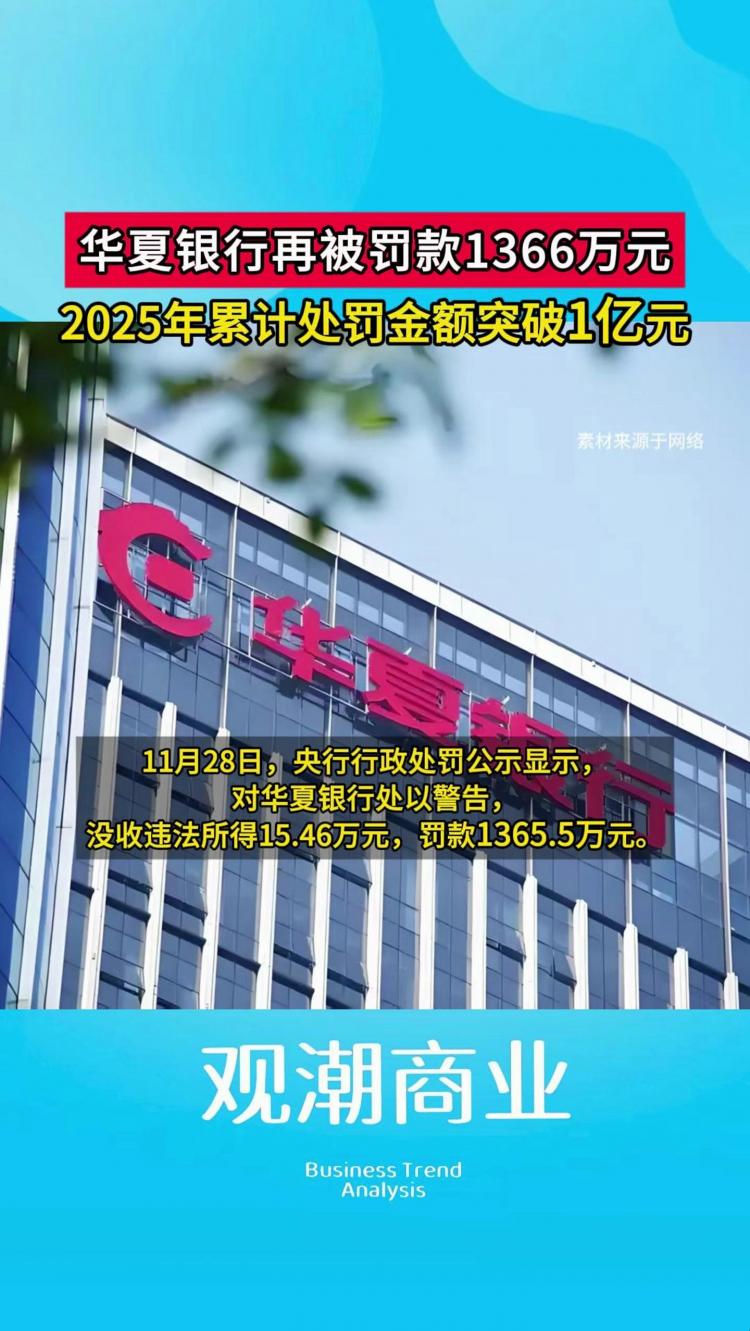 华夏银行再被罚款1366万元!2025年累计处罚金额突破1亿元